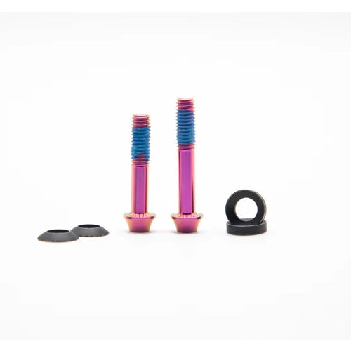 Los tornillos de titanio que diseñamos especialmente para el adaptador de freno Plasmadapt están disponibles en 8 colores diferentes para adaptarse a tu estilo personal.