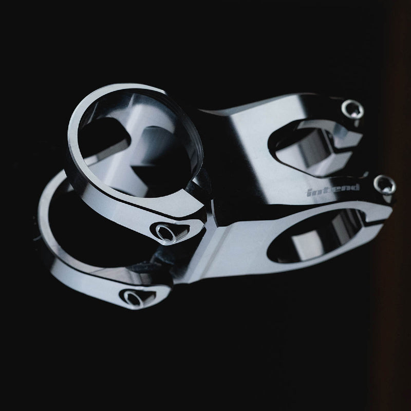 4 tornillos de titanio en negro, bordes redondeados para evitar tensiones en la abrazadera del manillar.